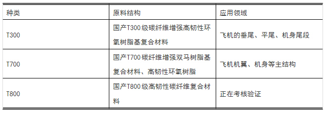 在第三代国产树脂基材料达标的基础上,中航复材系统开展了国产碳纤维树脂基复合材料的工程应用验证,如: