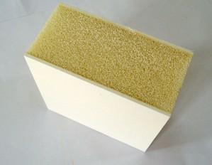 聚氨酯硬泡复合保温板:聚氨酯硬泡复合保温板是指在工厂的专业生产线上生产的、以聚氨酯硬泡为芯材、两面或单面覆以某种装饰面层的复合板材。