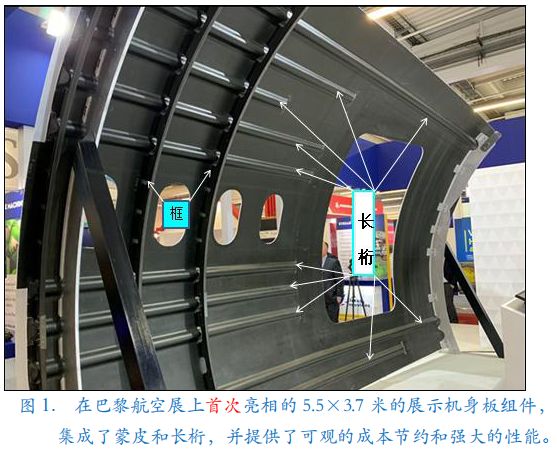 现 A320 和 B737 尽管机翼、机身都是用金属制造。但这种大小的飞机销路十分火爆,是这两家飞机制造公司的拳头产品、也是摇钱树。近些年其他公司新研发的飞机,仅机翼使用了复合材料。她们还不能对 A320 和 B737 的市场构成严重的威胁。因此,空客和波音对用复合材料制造机翼和机身的方案迟迟没有启动。没有启动不等于不做工作。今年巴黎复合材料展会和航展,以及近期有关复合材料报道的文章,都清晰地看到空客和波音在 A350 和 787 投产后,结合它们的经验,一直在研究如何把复合材料更好地应用在单通道民机上。双方都想在用复合材料制造机翼、机身的单通道民机上,再争高下。如,东丽为波音研发的、制造受力结构的、新型树脂基碳纤维复合材料预浸料:T1100/3960。同时还展出了蒙皮、长桁、大梁集成的尾翼组件试验件。空客和他的合作伙伴也陆续发表了,在“明日之翼”项目合作研发的一些成果。“明日之翼”明确地表示,替代 A320 的新型号民机,机翼将是蒙皮、长桁、大梁集成的结构。同时要采用满足生产进度需求的树脂注入工艺。最近为空客和波音制造大部件的Spirit AeroSystems 公司,公布了制造新一代单通道民机机身的创新方案。新机身创新壁板造使用新材料/新工艺结合,集成制造蒙皮和长桁,节约成本 30%(图1.)