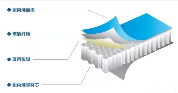 近年来,随着科学技术和加工工艺的发展,采用聚丙烯高分子原材料制造蜂窝板已是一种较成熟的技术。外表面一般为聚酯高分子材料及玻璃纤维面板,中间密排着聚酯高分子材料的蜂窝状六方形结构。