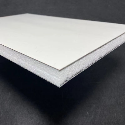 CFRT金属PET复合板是一种三明治夹芯板材,芯材为PET,面板为CFRT层压板,通过加热直接热熔复合而成,不使用胶水,表面
